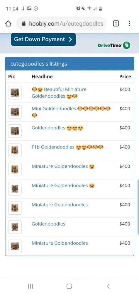 cutegdoodles put up ads again yesterday selling the same goldendoodles that so many have been scammed out of a deposit for. Why can't this person be stopped. I just want to help someone to not let this happen to them. If this has happened to you, you need to go into your Zelle and request your money back from her everyday. Do not give up bothering her. Don't be a victim of this scam. I hope this helps someone. They also say they are selling French bulldogs just be ware of the name cutegdoodles