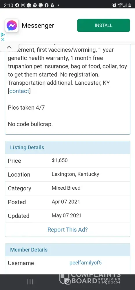 The number was [protected] goes by James Maxwell. Dold me a white pug. Never received