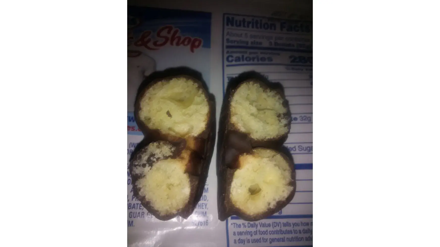 Purchased on 07/10/22 at walmart in chehalis Washington. Looks like someone or something took bites out of 2 of my brand new package of donuts.