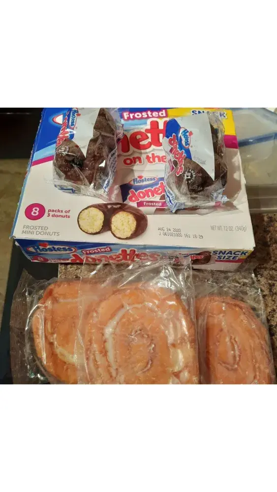 I have been in the hospital since December. My daughter brought me a family size box of ding dongs and Twinkies. On the ding dongs the seam is open and they are stale.
