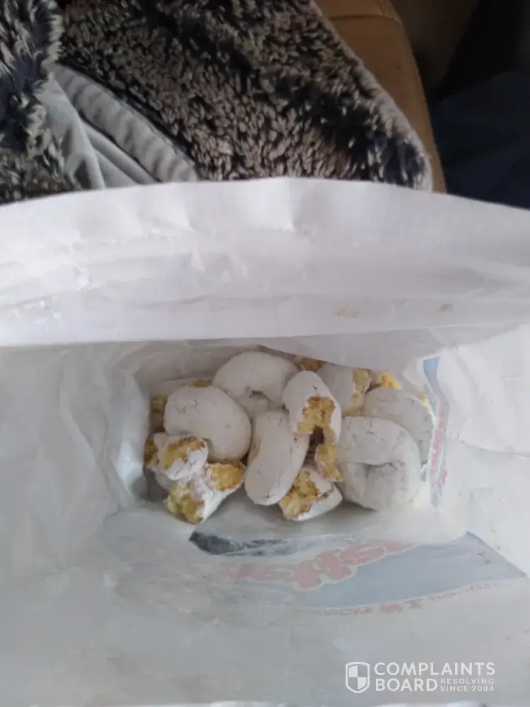 Today while traveling my husband picked up a bag to snack on in the car. It was the only brand available at Flying J. Once again stale, and broken up donuts. Bag dated for May 31. Unfortunately he bought 2 bags because we're camping and I like powdered donuts for breakfast (another brand)