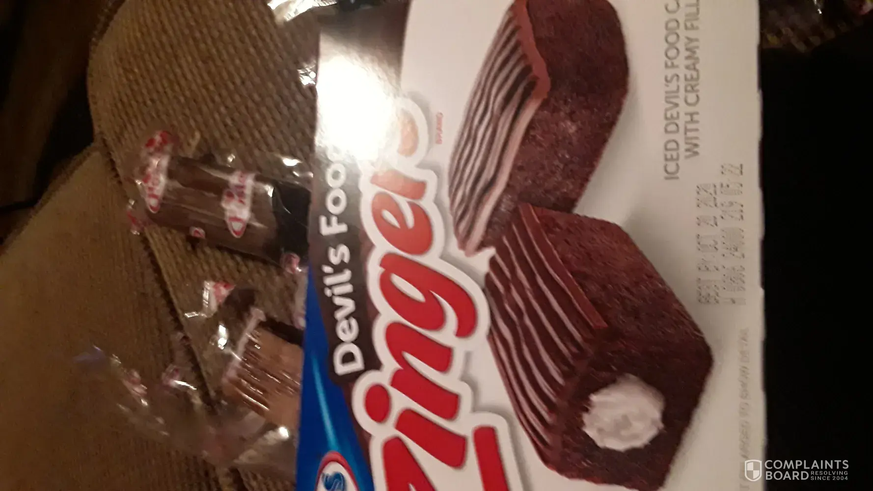 I purchased a box of 10 devil's food zingers and when I took a bite of it, it was very hard and when I took another out I noticed that the one I took a bite of was discolored very light and hard but the next one was very good but the one I took a bite of was awful and made my mouth have a terrible aftertaste for a long time even after I ate the next one don't know why it was hard like that but I wanted to address the problem so it can be Aurora Mosley. You can reach me at [protected]@gmail.com