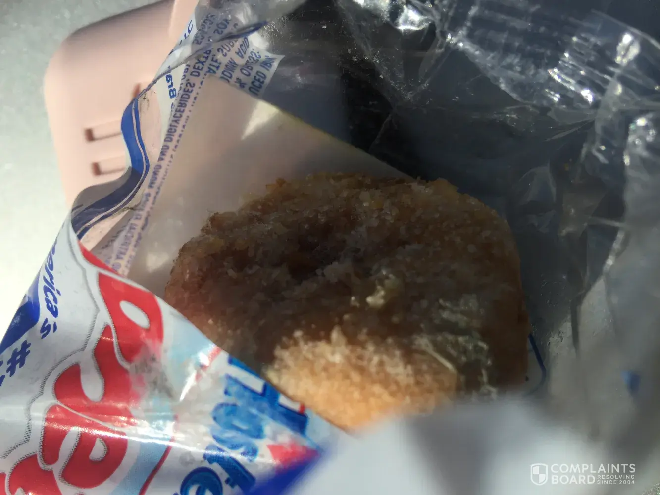 I bought two packs of crumb doughnuts today boy was I excited they are my favorite. I usually look at my food before I eat it but not this time. I ate 1 doughnuts & it tasted weird as if it was sprayed with something then my mouth went dry! I spit it out immediately & looked at the rest of the doughnuts they where all molded . This ruined my day I immediately started vomiting.