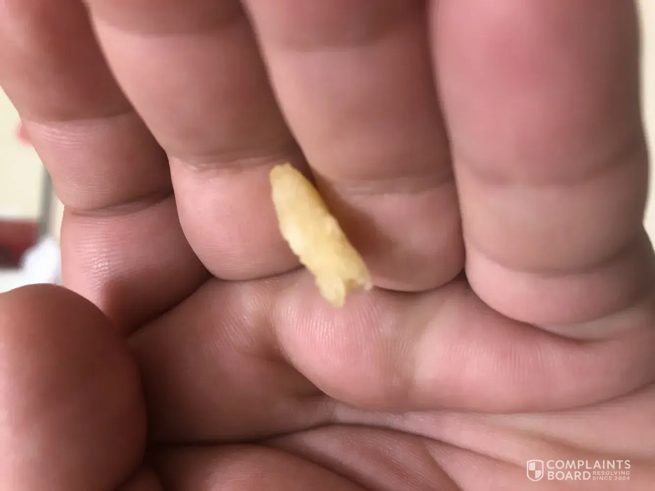 I bit into something hard as a rock. When I pulled it out and washed the bread from around it, I cannot determine what it is and I'm disgusted. This literally hurt my tooth when I tried to bite into it. I am astonished that something like this could mistakenly be placed in a food item. Never again will I eat your products. I tried to break whatever this thing was in half and it wouldn't even break down.