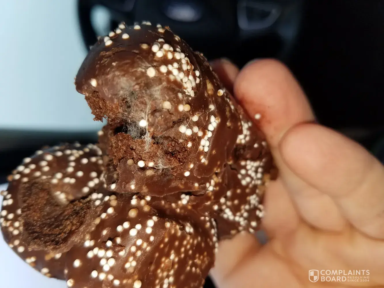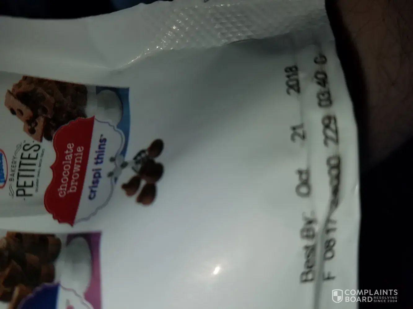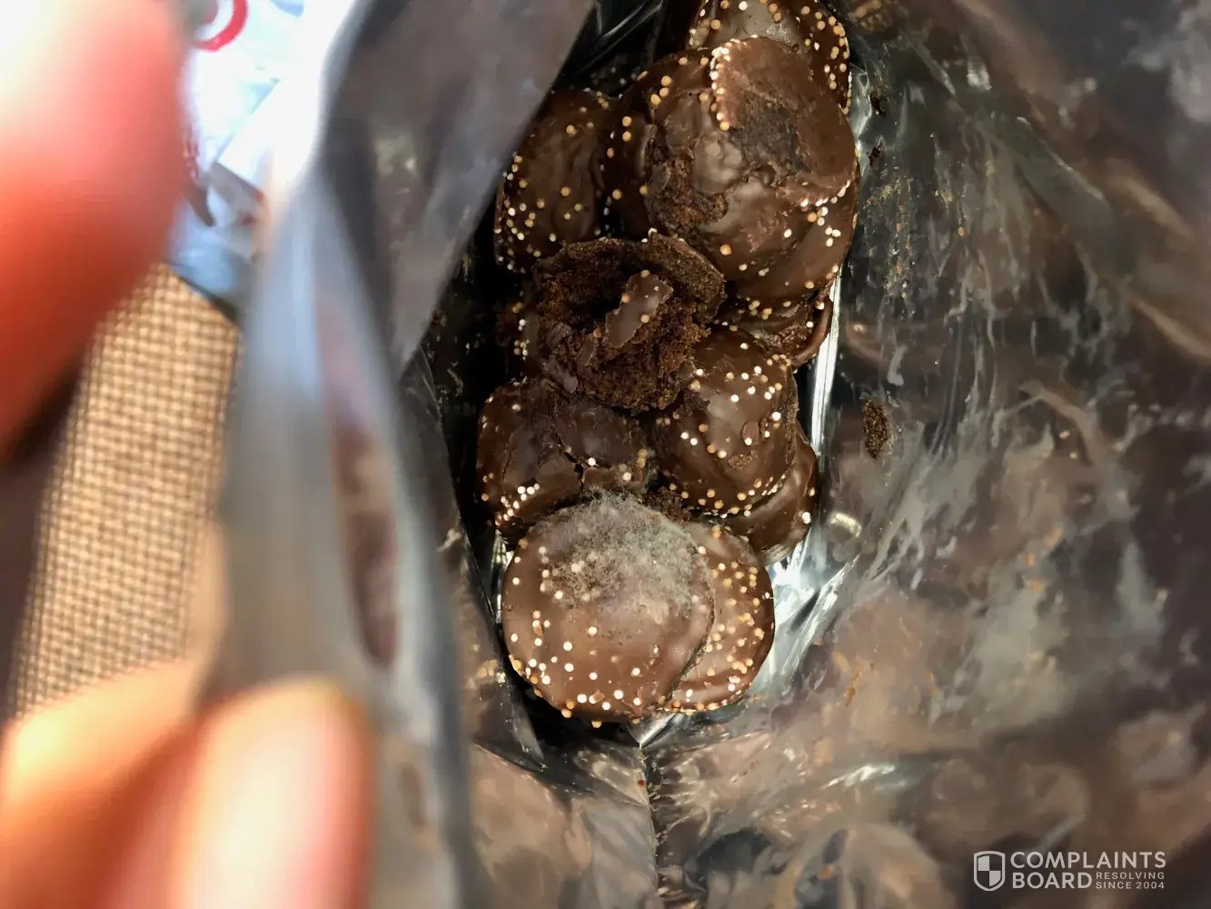 I just purchased a pack of the double chocolate cake delights bakery petites, and I was a little disappointed with the taste and the fact that they were all stuck together, but then I noticed on the bottom of the fused mound of chocolate...mold. I had already eaten some, and I'm hoping I don't get sick. As you can see in the picture, the expiration date is October 21, 2018, and today's date is October 16, 2018, so they should still be edible...but they're moldy...