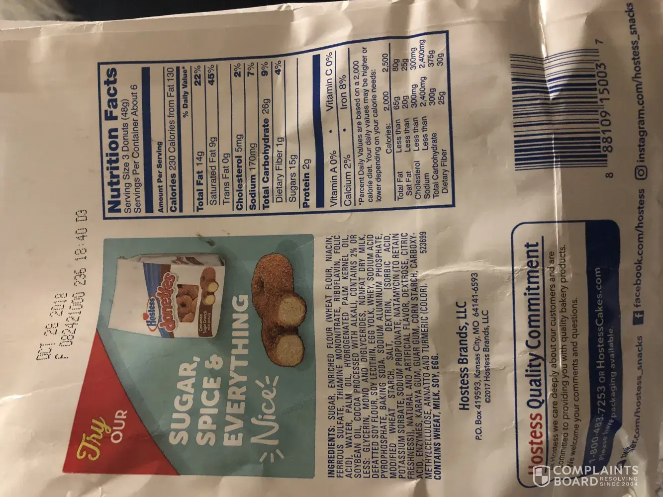 Bought a box of Suzy Q's the cake does not taste fresh the cream in the middle taste more like icing I don't know what has happened to the old recipe but this new recipe just don't get it the cake is really dry taste kind of still very very disappointed UPC code is [protected] expiration date December 12th 2018 F100 8:[protected] L 11 I don't know if you guys have changed the recipe or what but the cake is so dry it almost taste L the middle of it that used to be light and fluffy is real stiff and taste more like icing that you put on a cake I am very disappointed this is not the Suzy Q's that I have always ate it's been a minute since I bought any but I know what a Suzy Q should taste like in this shirt doesn't taste like a Suzy Q