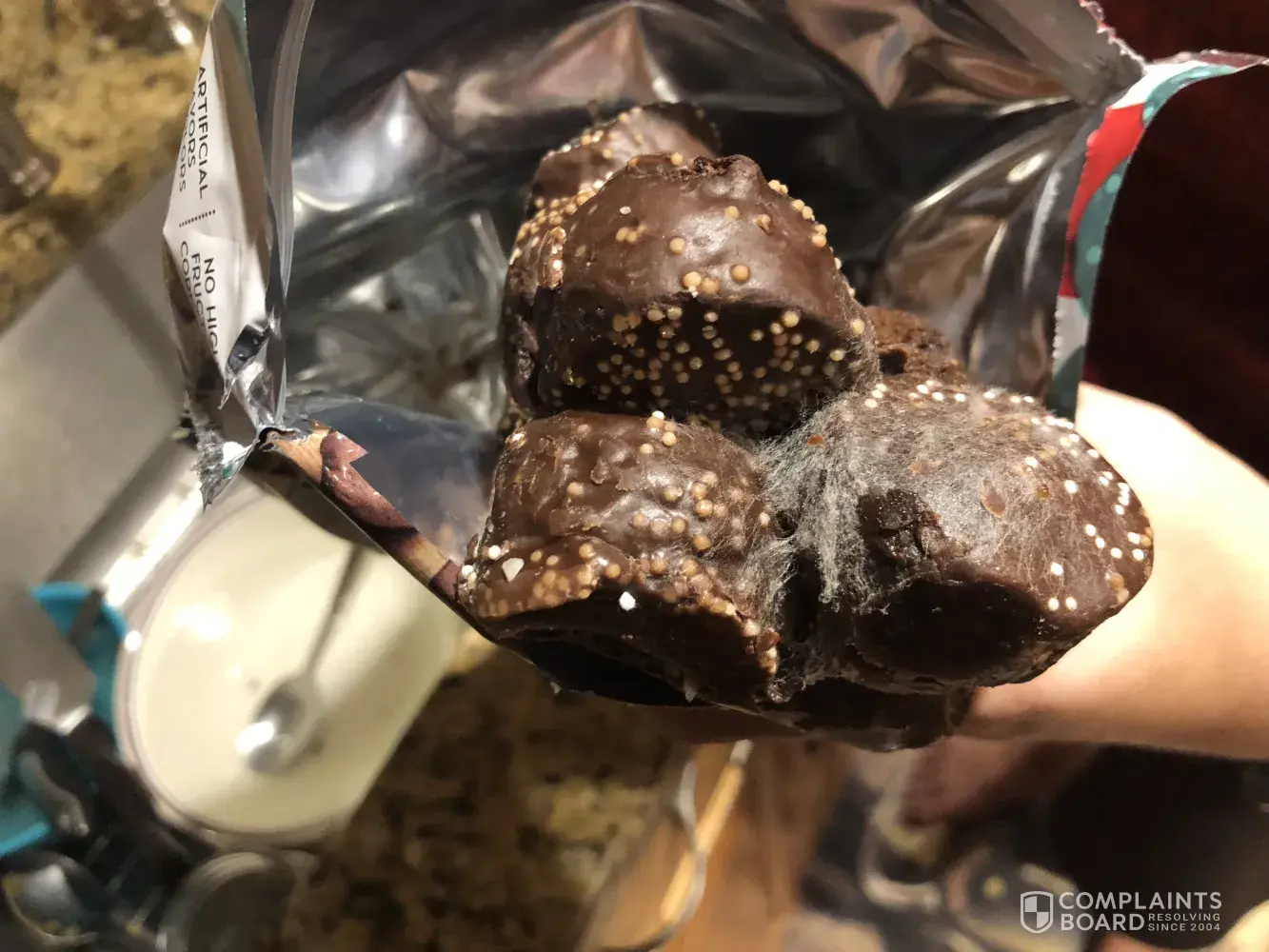 chocolate Cake Delights to try. Upon opening the bag we discovered mold growing inside. The bag appeared to be sealed with no noticible holes or tears. We then confirmed that they are not expired with an expiration date of September 30th 2018. Just want to warn you all of this concern! Needless to say we threw them out.