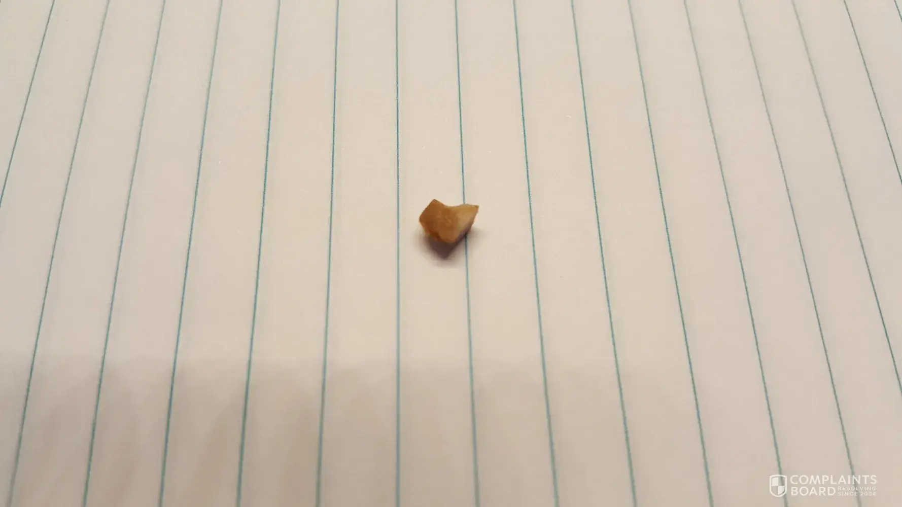 My household eats at least one bag of hickory sticks a week. Been eating them all my life as they are one of our favourite snacks. Yesterday I put a bunch in my mouth and starting chewing and bit down on something really hard. Broke my tooth. I still don't know what it is. It is very solid. Will include a couple of photos of the debris I chomped down on.