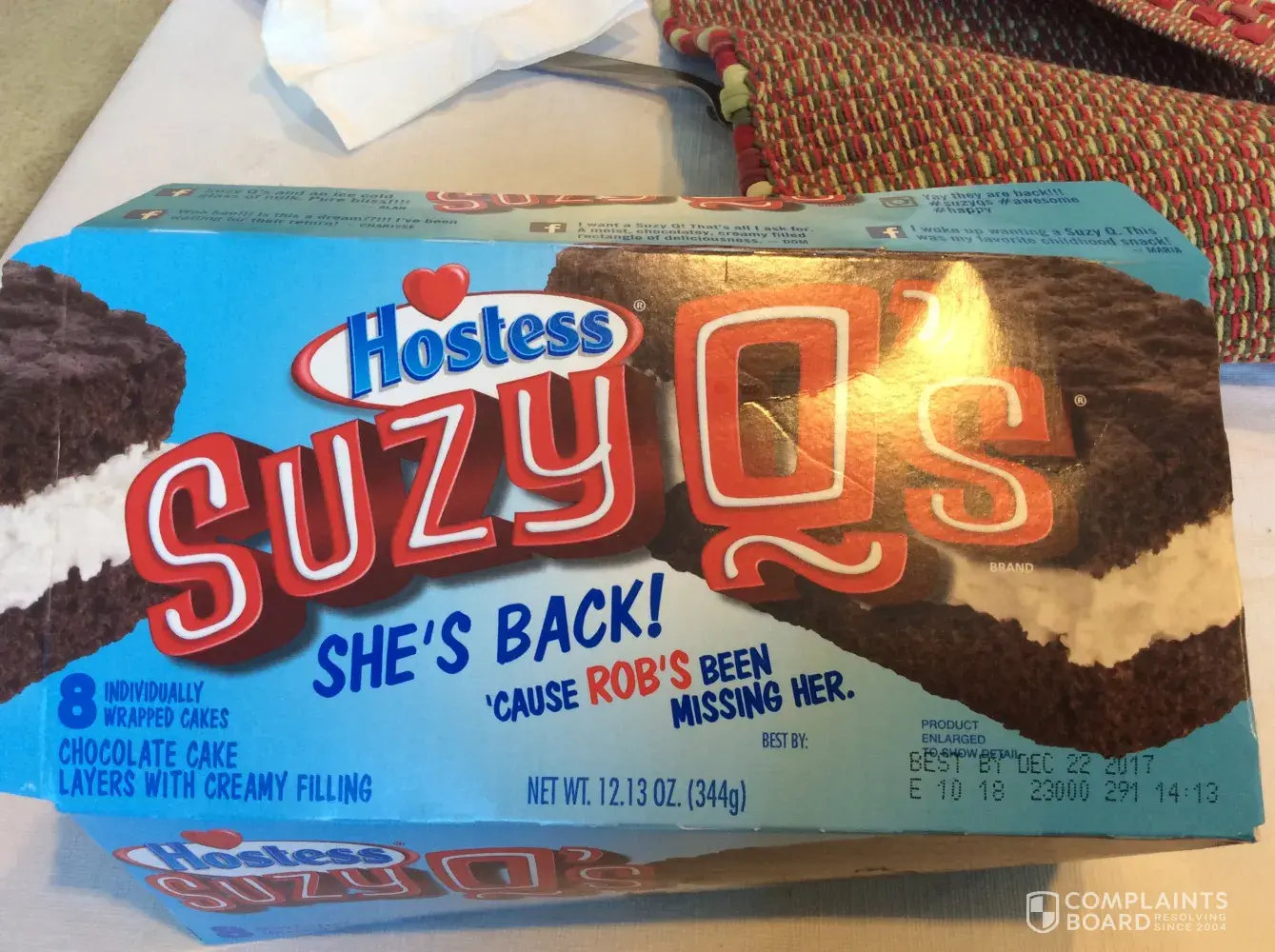 😲 I was so excited to see a Suzy Q. Then I open the box and had one. It taste like cardboard. I was so disappointed. It was nothing like I remembered. Just awful. I offered a cake to a friend to make sure my tastebuds were not out of whack. Well, they had the same response. Just totally terrible. Something was left out of the recipe. Extremely awful.