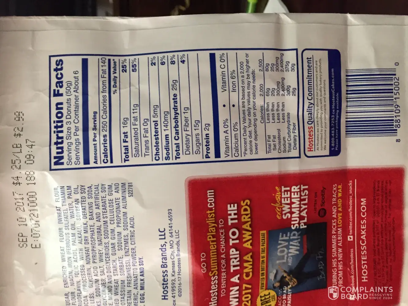 I bought a 3pk of Hostess Zingers Vanilla from Walgreens at 1627 N. Pulaski Rd. Chicago, IL 60639. Receipt info as follows: [protected]/23/2017 11:16am. I just opened them to see that the frosting is no longer soft, but hard and dry at the end of the zingers. The paper that supports the zinger in package looks as if it is dirty or it may just be greasy. These zingers shouldn't look like this especially with a best by date of: Sept. 16, 2017. Here is the information from the actual package: Best by: SEP 16 2017. E [protected]:48 L