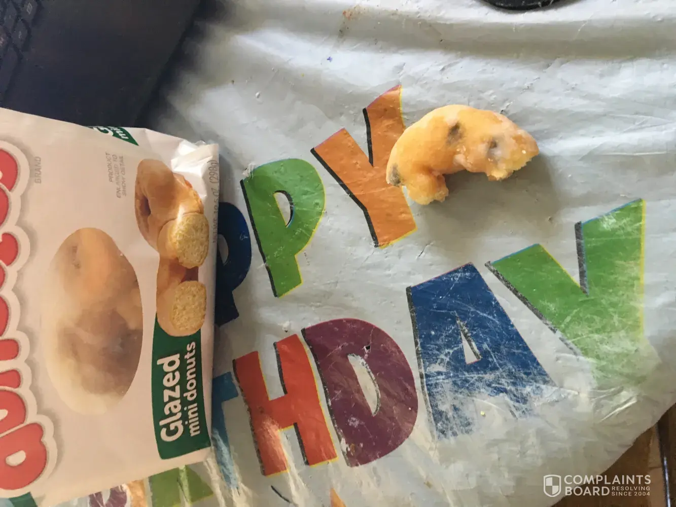 I purchased a bag of mini-doughnuts on Friday, June 30th, 2017. Today is Sunday, July 2nd, 2017. In the bag I have found about 3 doughnuts with blackish dots on them. I threw away the first two and then took a pic of the most recent one I found. The expiration date on the package is August 4th, 2017. I believe this is mold and I wanted to make you aware of it. Many thanks for the years of great products.