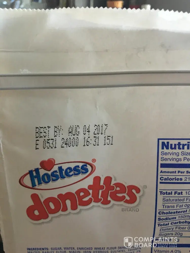 I recently purchased a package of your Hostess Donettes crunch Mini six pack. When I opened the package, the donuts were very dry and crumbly. When I took a bite, it was stale. I looked at the expiration date and it was stamped JUNE 17. 2017. I made the purchase on JULY 1. 2017. These donuts are 2 weeks old and should have been pulled from the shelf. I was aware of the date until I had already left, so it was too far to go back and return them to the store.