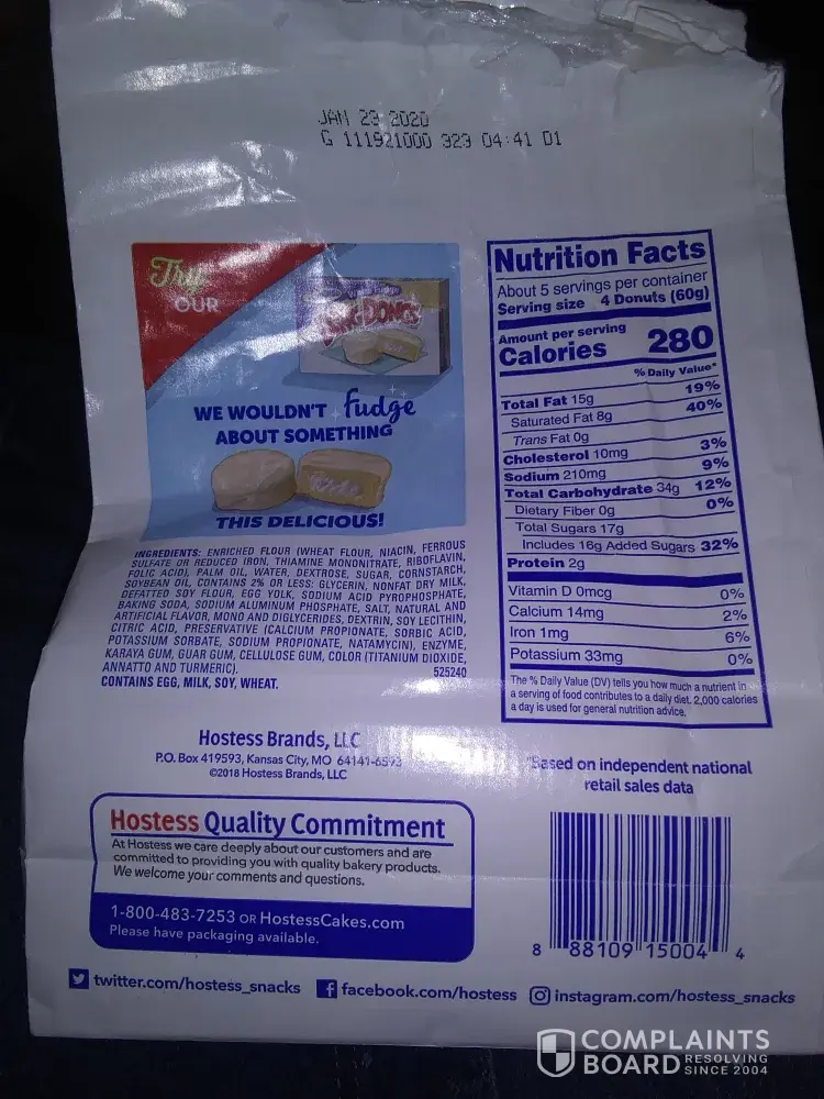 I have bought cookies from the company www.hostessbrands.com. I received two packages and was shocked that the expiry date was almost due. I emailed the seller and told that I wouldn’t happy to get almost old cookies, and I would love to get money back or change these packages for new one. But the seller told me that they wouldn’t send new order, because they haven’t had time for me and my problems. Awful attitude.
