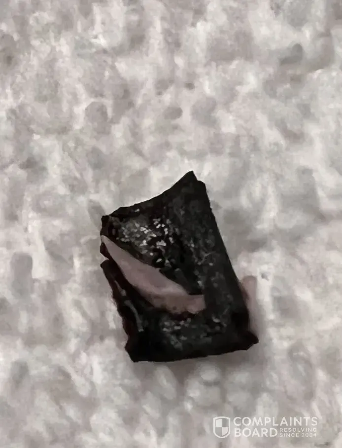 If I would ha e given this to a child they could have choked to death. Again please see your Twitter page for pictures. I luckily bit into it but did break it into the 3 peices seen in the picture.