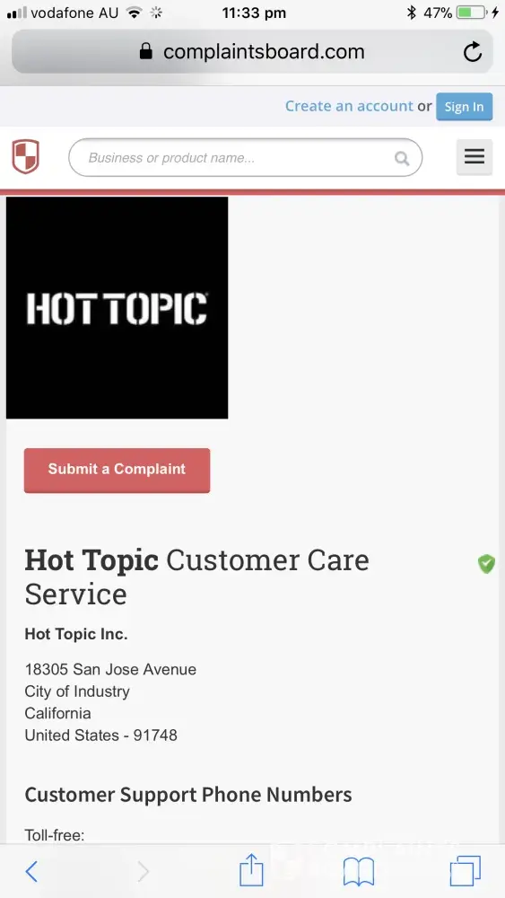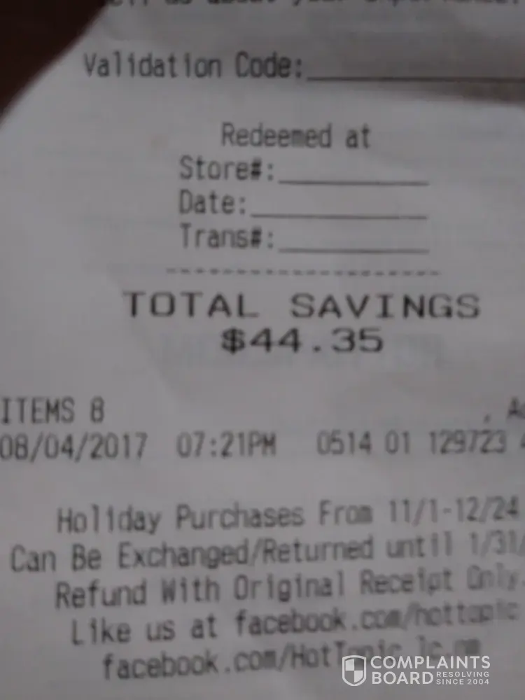 This is the response from Hot Topic below: