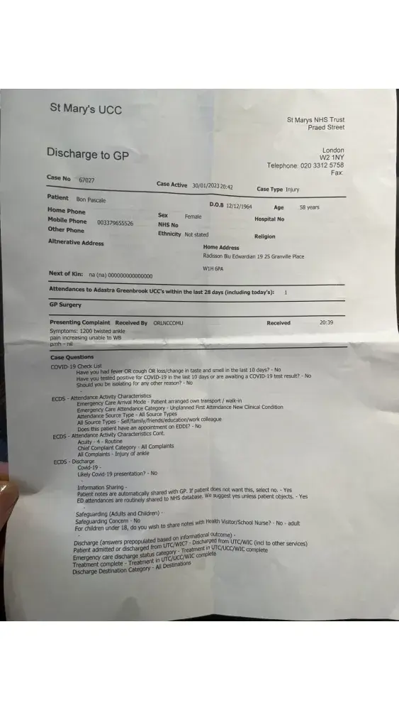 Read full complaintRadisson Blu Edwardian Sussex - Lack of information by receptionist about a step in the room negligence