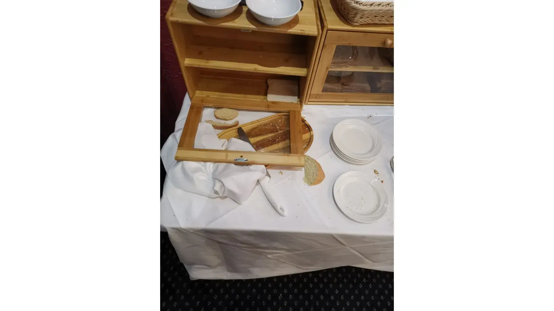 The next issue was breakfast we went down to breakfast at approx. 0930, there were no tables ready as they all had been used and dirty. We were offered outside seating to which the table had not been cleaned it was covered in sand and rainwater. We were forgotten about for 20 minutes, at this point I was shivering in the cold and went in to ask if we could sit inside. This was arranged and we sat down. No one explained how the breakfast worked and we took ourselves up to the continental tables for food. It was poorly laid out poorly maintained and hardly stocked which at mid morning I would not expect. Another 30 minutes passed and staff eventually took out cooked breakfast order. The cooked breakfast was lovely and the lady that brough it out was friendly but this was the only good part of out experience. Breakfast having took so long delayed our departer and we very nearly missed our sons school open day.
