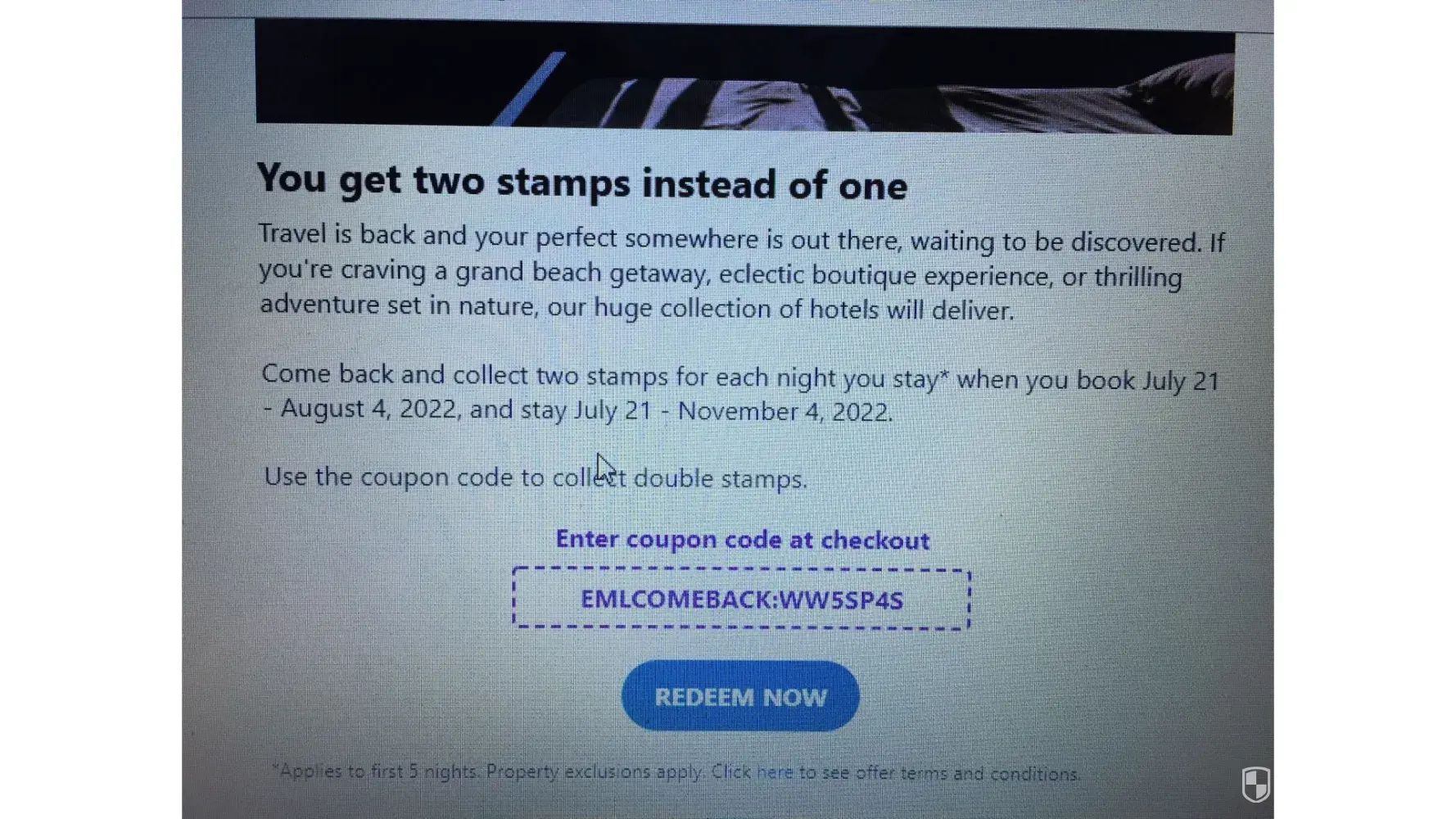 Desired outcome: I want dbl stamps for the 5 nights I booked as was offered in the welcome back email