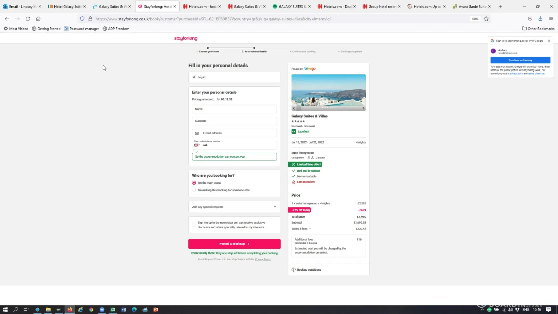 Unable to book a room