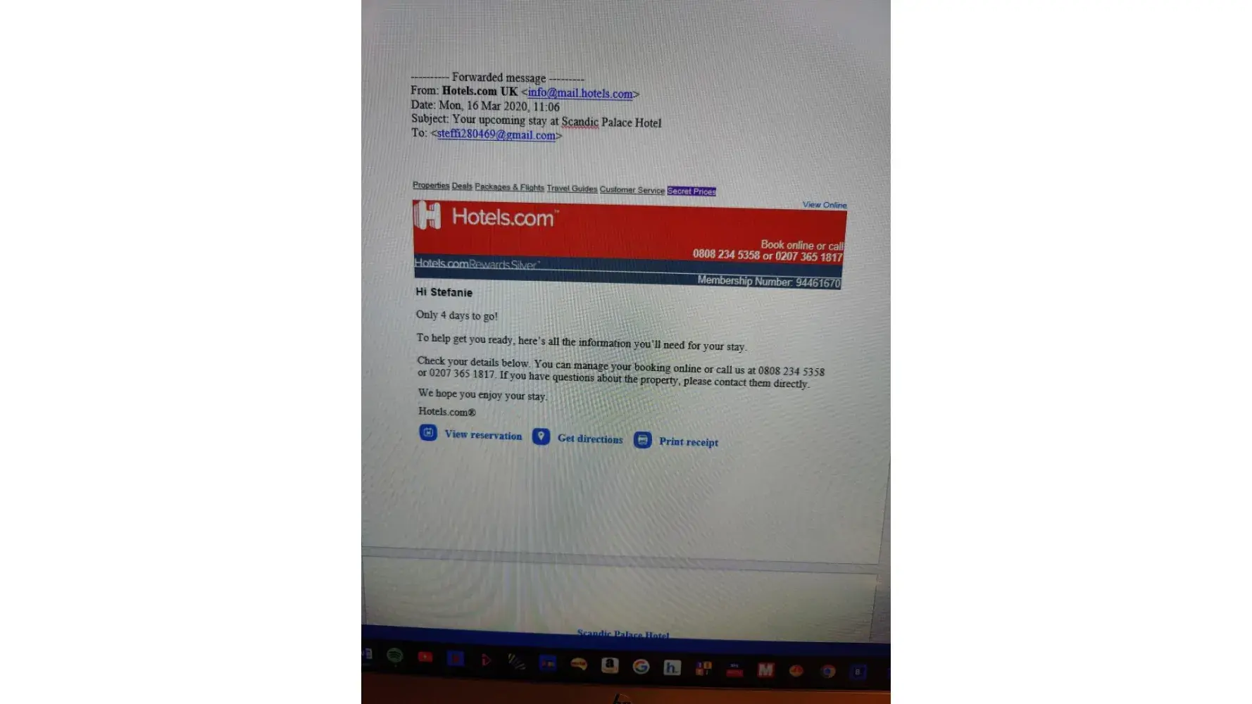Hotels.com took my booking and took £188.00 payment for 2 nights accommodation dated 29/03 & 30/03. Reservation confirmation [protected] Hotel name RADYR PLACE APARTMENTS in Cardiff UK.