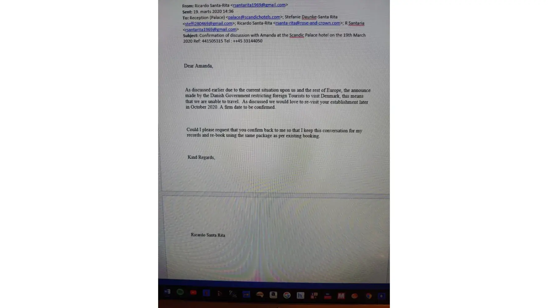 Although they have had the money upfront for a date that we were not able to travel due to the restrictions imposed by Denmark etc...then Britain etc...