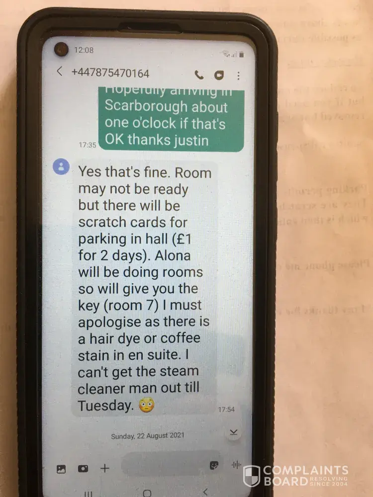 There was a excrement stain on the bathroom floor trying to be passed off as hair dye, in my opinion under no circumstances should this room have been let until the disgusting stain had been removed. We were offered a £10 reduction if we paid but we had already paid.