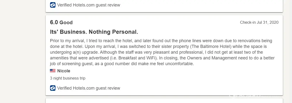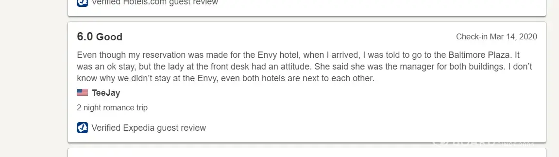 Desired outcome: Removal of inn from site or that original rate be honored