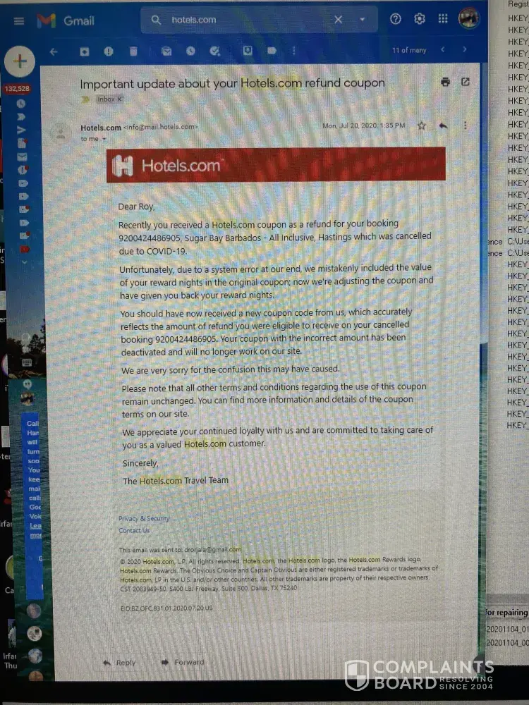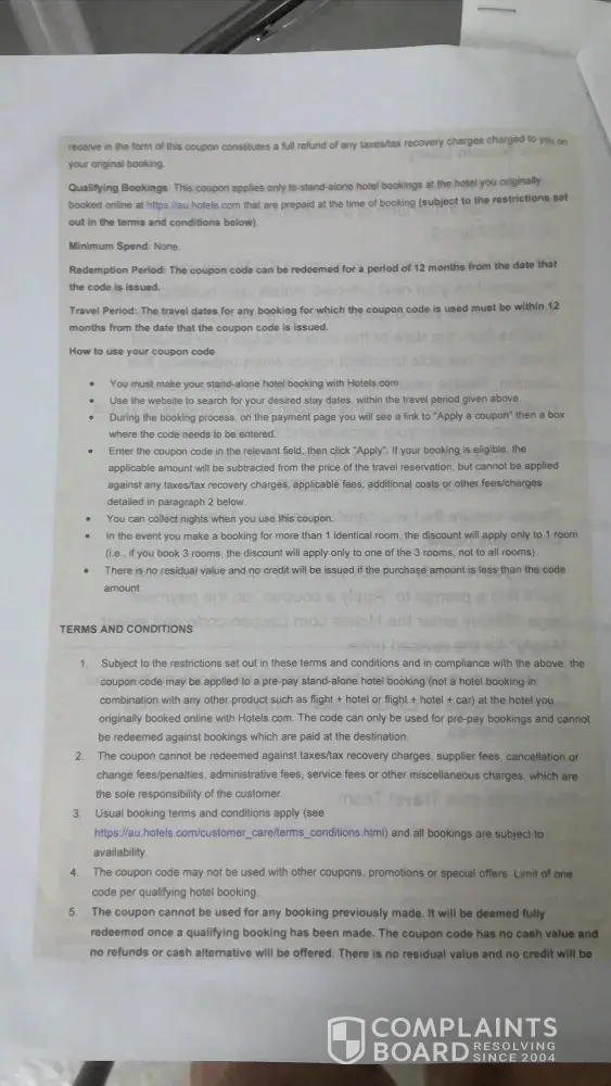 We had booked a hotel through Hotels.com for a stay in St Lucia in May 2020. Because of covid the island closed down and Hotels.com issued a voucher for the booking. I admit it was a non-redeemable booking as I had presumed that our travel insurance would cover any problems we may have had (of course it did not cover a pandemic). However we were provided with full refunds for our other bookings, given that they were not cancelled by us. In this instance though Hotels.com issued a voucher in the form of a coupon for the amount of AUD $578 but it can only be used at the same hotel as the original booking. I live in Australia and we are still not permitted to travel overseas and it is very unlikely that we will be able to get to the Caribbean before the voucher expires. I cannot understand why Booking.com and Airbnb can provide a refund but not Hotels.com. We would be happy for a voucher to use at any hotel (ie in Australia). The terms of reference provided with the voucher are very specific saying the coupon has no cash value and no cash refunds or alternatives will be offered and the terms cannot be changed .