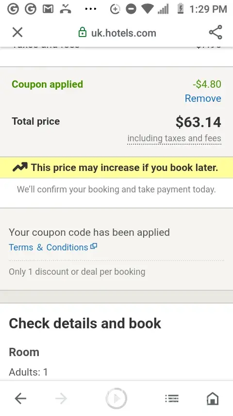 fraudulent price change on hotel booking and very rude staff at hotels.com