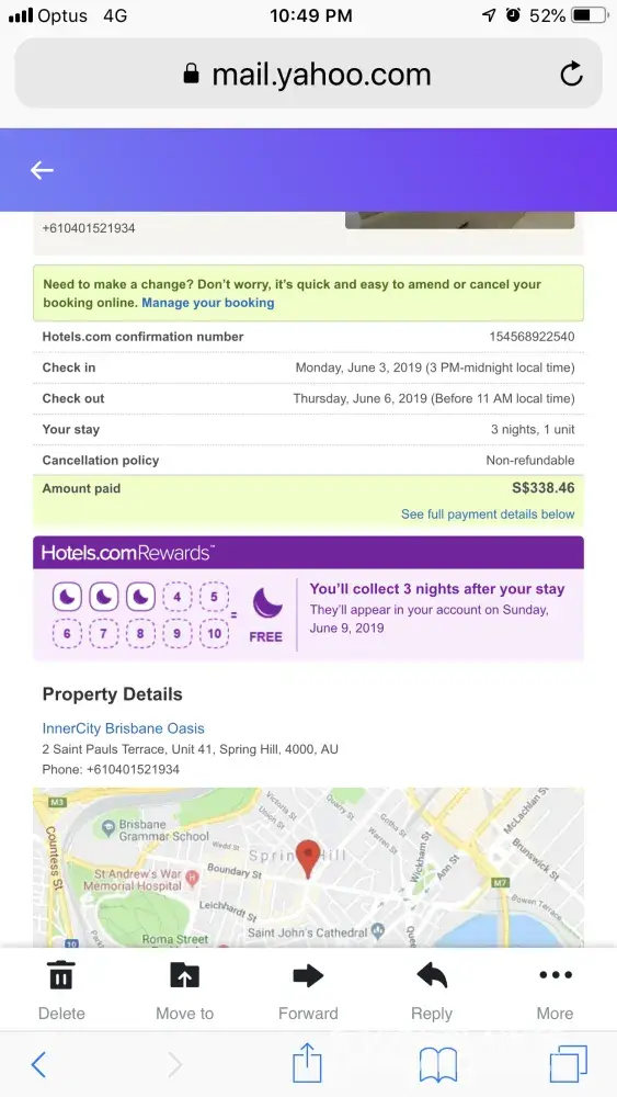 I have made a booking for an apartment through hotels.com app online on 1 January 2019 and confirmation for the booking was sent to my yahoo and the payment was also made.