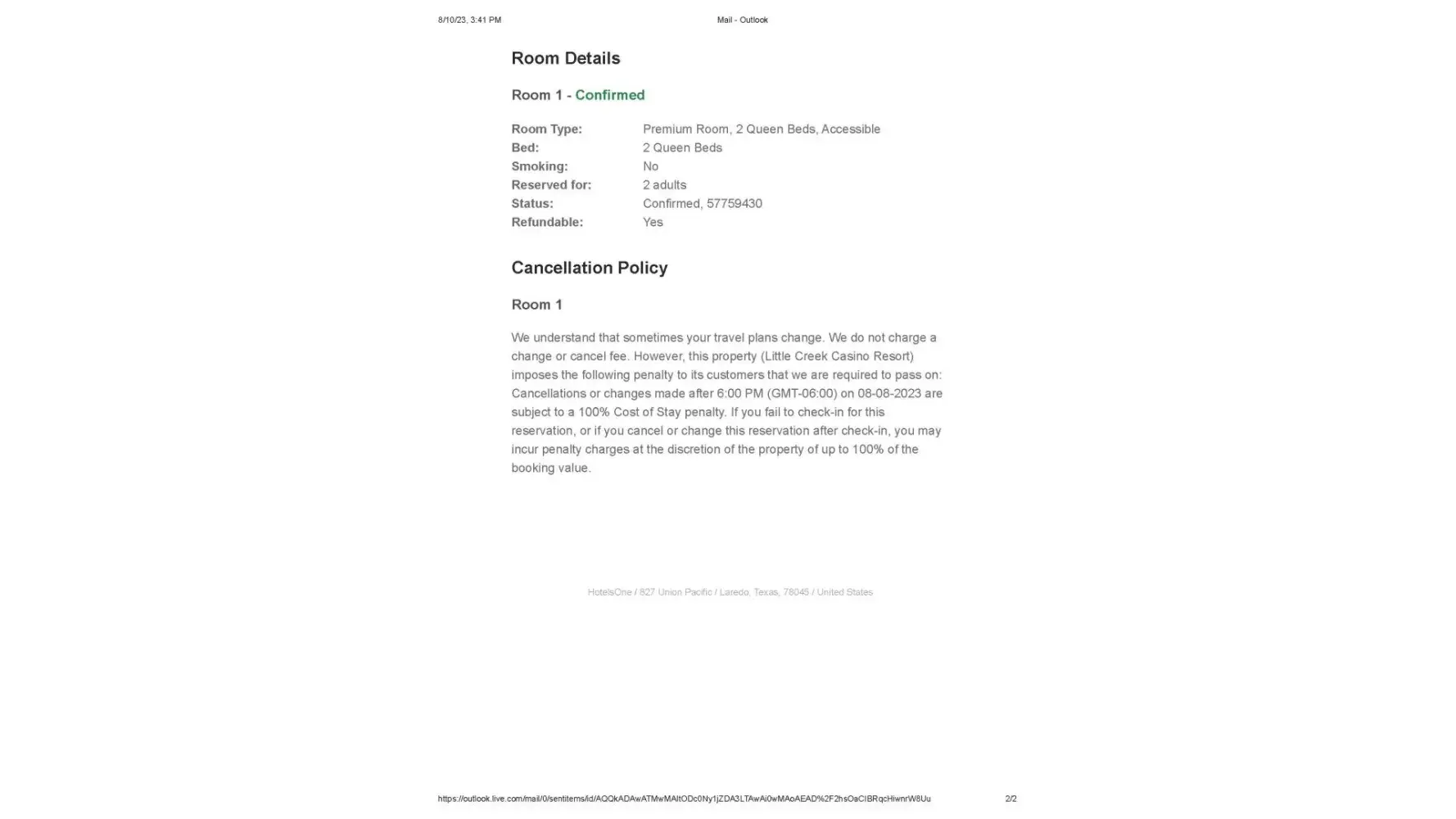 HotelsOne.com Reservation cancellation