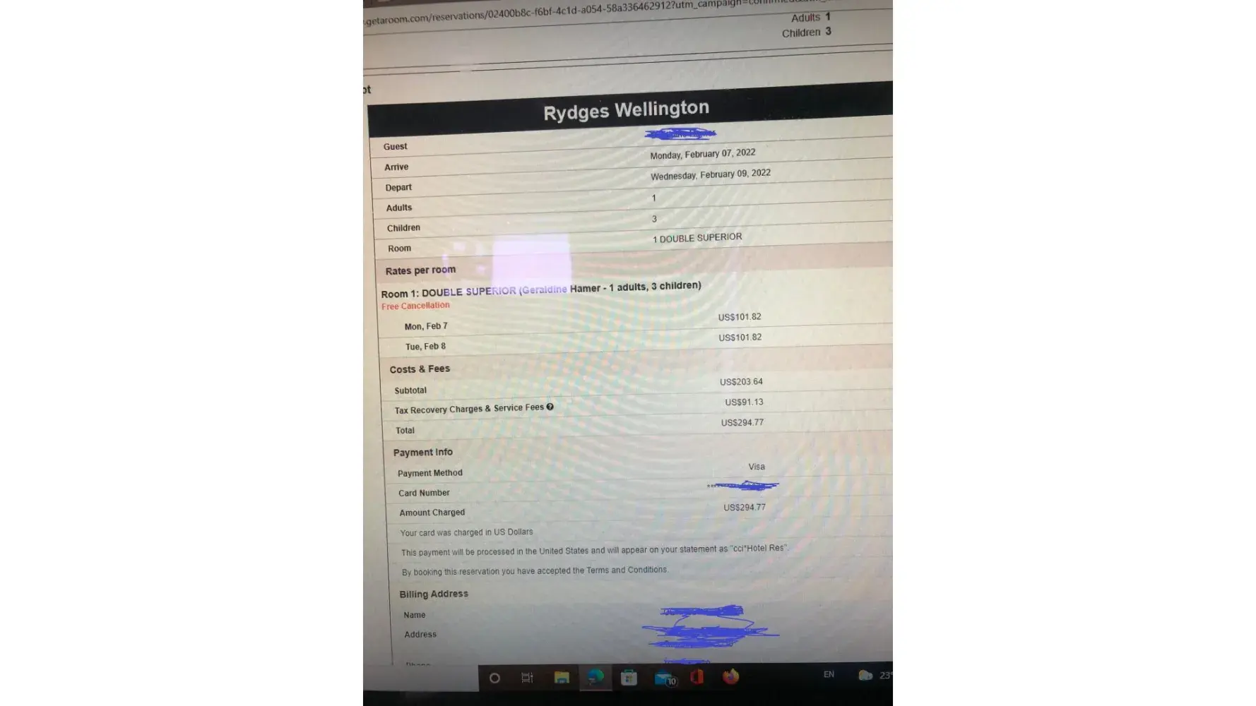 Extra charges.hotel cancellation fee