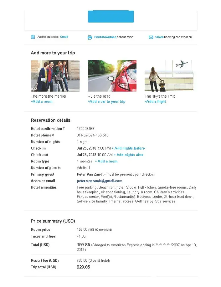 The inability to locate the reservation, which I understand she was eventually able to find, led us to looking at the charges a little more closely.