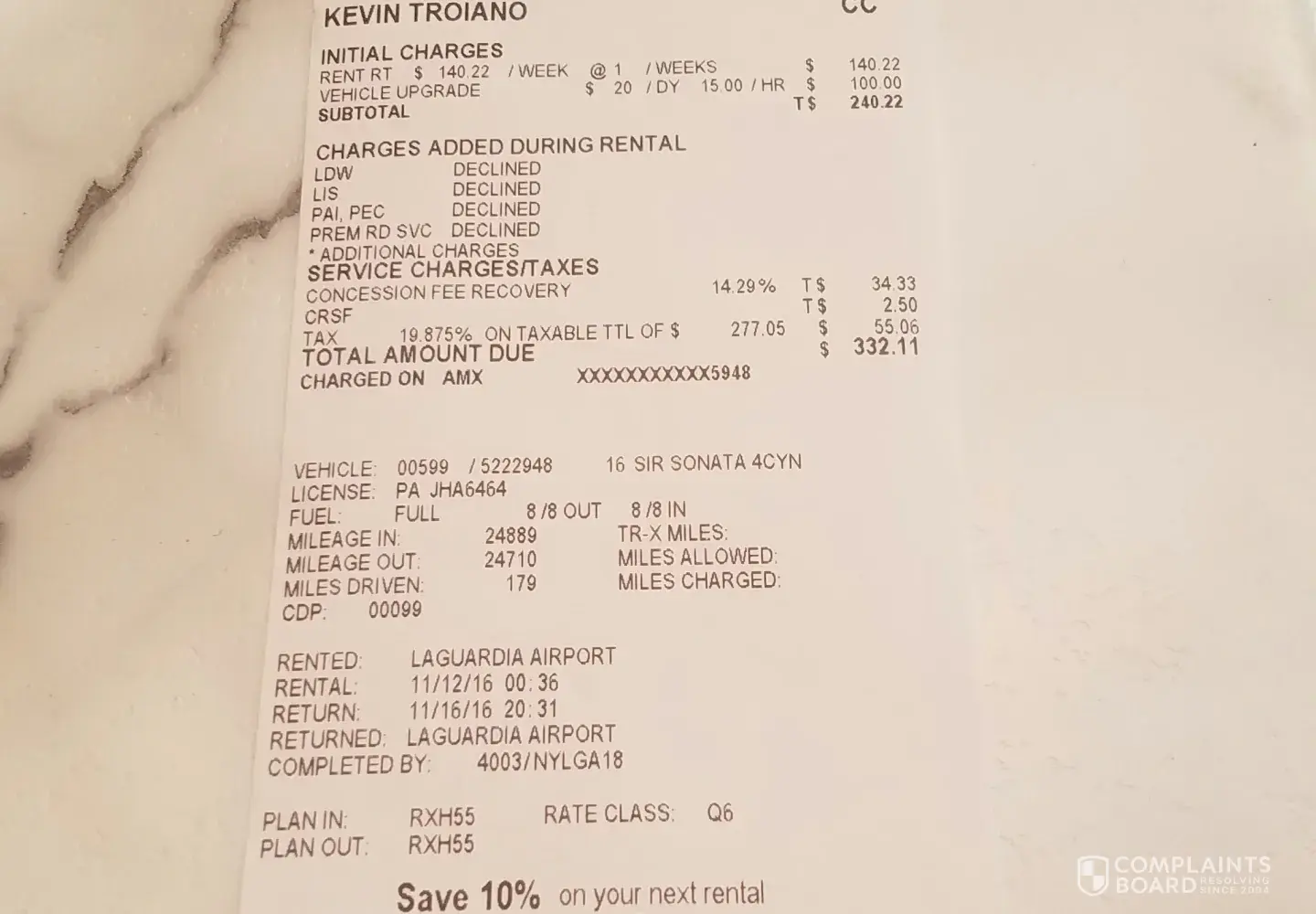 Verified customer This complaint was posted by a verified customer. Learn more