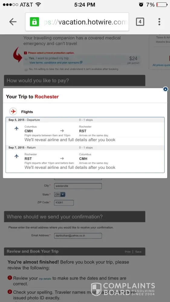 Itinerary # [protected] In September 2015, I booked a trip on the Hotwire website for Nov. 5th - Nov. 8th, 2015. I purchased the offered insurance ($44.00) in case something happened. Apparently, Hotwire's itinerary links provided for my trip did not have the correct information. This was a bait and switch. I want Hotwire / Expedia to take care of the...