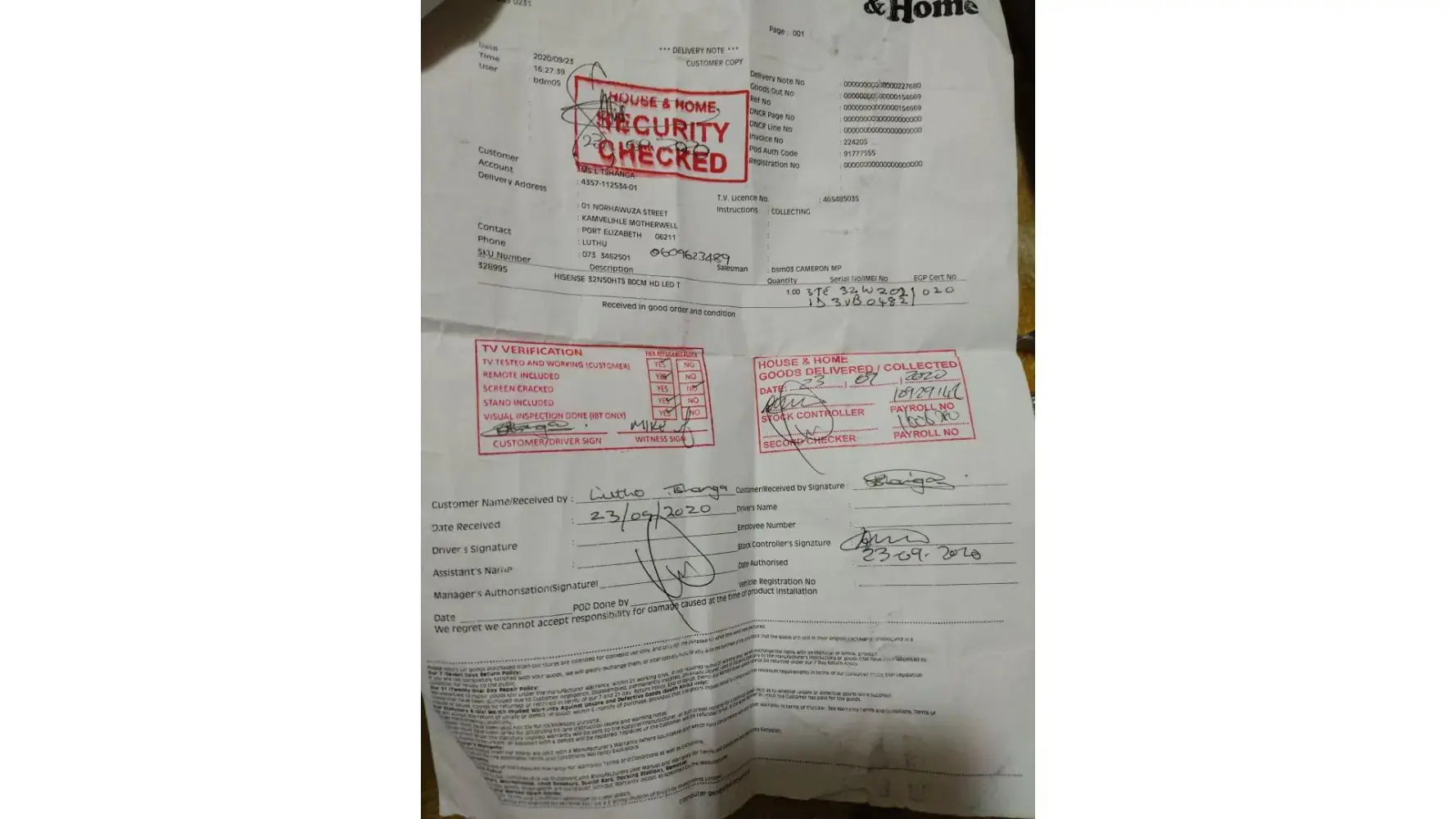 House & Home South Africa Delivery/damaged product