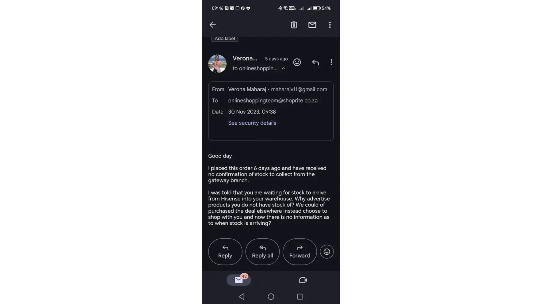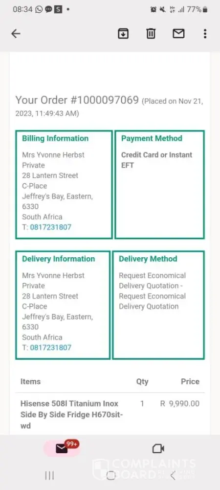 House & Home South Africa Non delivery of products that was purchased on the 21st november 2023