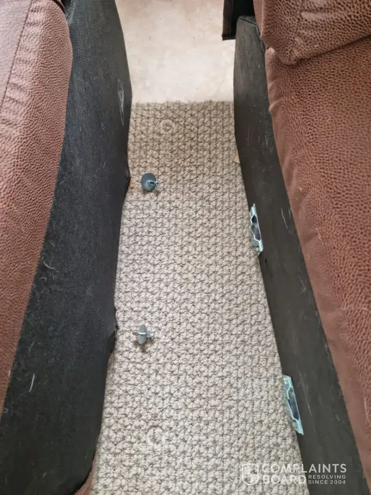 Additionally, after the maid cleaned behind the chair and moved the couch, both screws popped out from the other couch, indicating they were not properly secured.