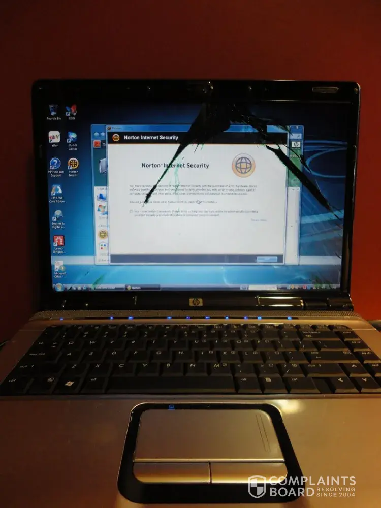 Fast forward to October 2010. A few weeks ago my current laptop (the one HP gave me as a replacement) started having the same issue my previous laptop had. I called for repairs (as it had an extended warranty until 2011) and I was told it was a motherboard issue. Clearly, their line of laptops have rampant motherboard problems. So I sent it in for service on October 26th, 2010. I got it back today, October 28th. I was surprised I got it back so fast, but I was more surprised when I opened the box. Upon opening my package and inspecting my laptop, I discovered a GIANT crack in the LCD screen. To add insult to injury, the motherboard was clearly not replaced because the computer still wouldn't accept the AC adapter (so my original problem is still unsolved) AND they completely wiped my hard drive.