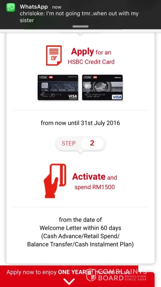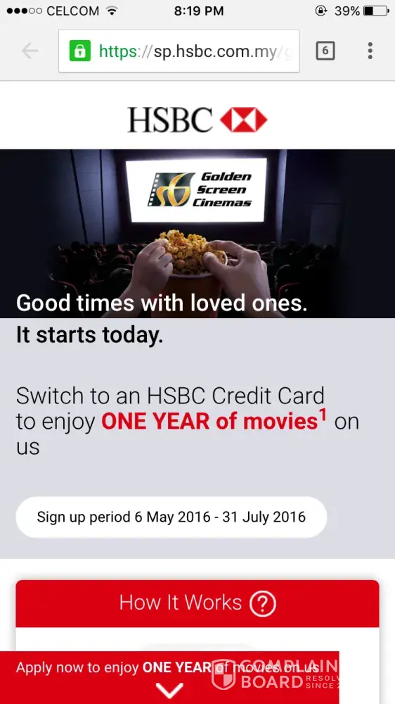 The best part is they will not fulfill what they promised. They promoted in website on whole year free GSC tickets if spend more than RM1, 500 for those applied the credit card during the period of time. But when I ask them, they said it is for first come first serve only. Never mention in any of the tiny wording in their promotion flyer. Isn't this cheating? Disappointed with HSBC!
