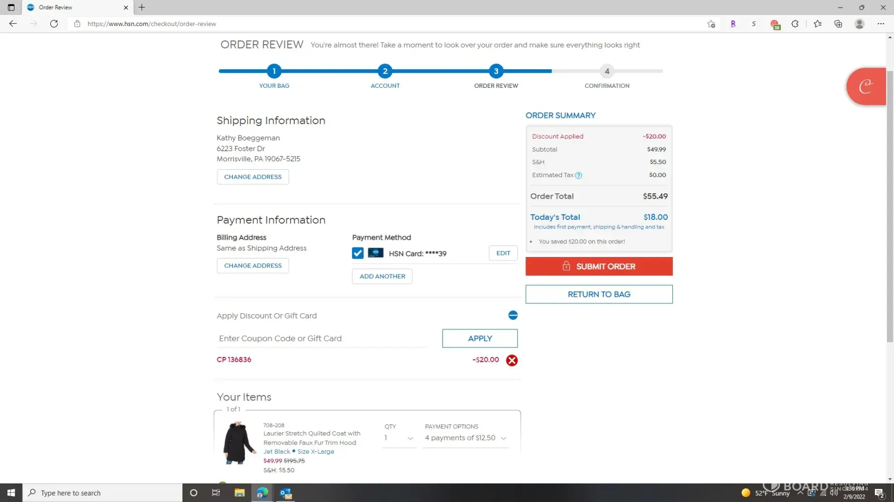 Same experience as a first-time customer. Saw the HP laptop with free printer advertised for President's Day sale on 02/21/2022. Applied for and was approved for an HSN card. Received order confirmation. Three days later received email stating my order had been cancelled. I called customer service and was told I had to speak with the verification department (which is their fraud dept). Their dept. said I didn't respond to an email the verification dept. sent me. So, they cancelled my order three days later. I was already approved, and my new order was approved. Doesn't make sense. Sounds like an error by HSN and they have lost my business.