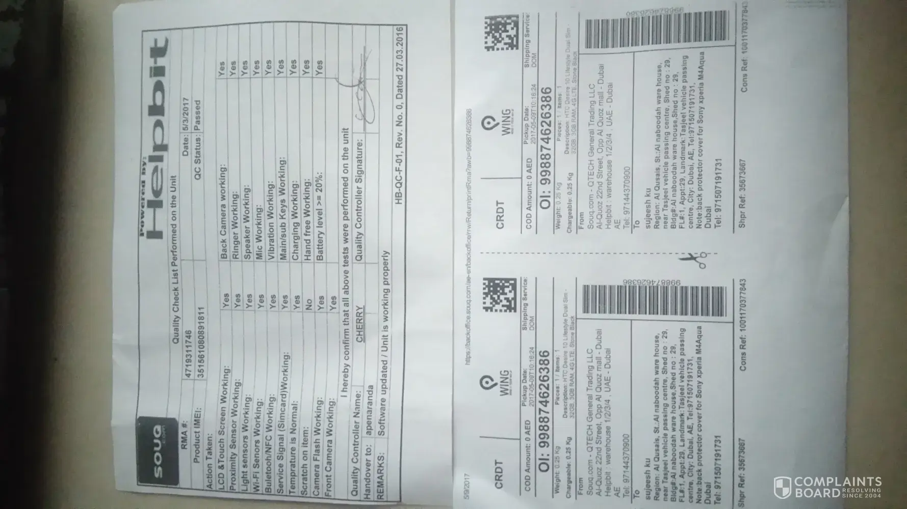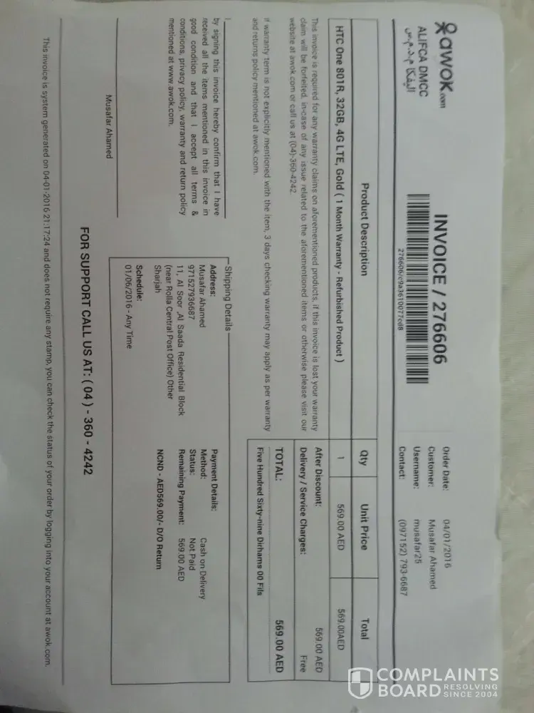 On May 27, 2017, I placed an order for "HTC One X9 Dual Sim - 32GB, 3GB RAM, 4G LTE, Carbon Gray" and the order number is [protected]. As the item was provided by HTC UAE the shipment was sent by Aramex to Riyadh. The Aramex shipment number is #[protected].