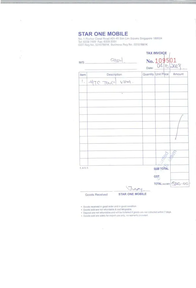 I have purchased HTC Mobile GSM Model:P3400i( sr no:HT834FW07354). In the of month September 2017 on 26th, from MANGO stationary Pvt.Ltd. Naupada, Thane (W)-400602. Mumbai