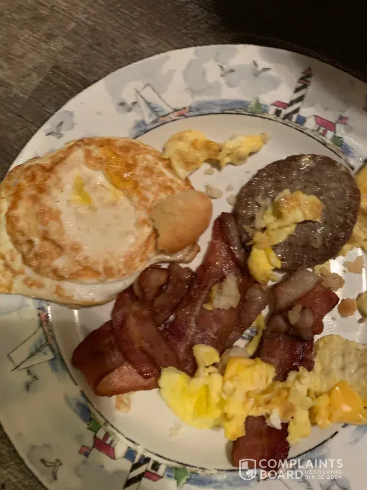 Ordered breakfast, scrambled eggs were not beaten; you could see the egg white everywhere. Gravy was cold and had it heated twice before it could be eaten. Biscuits were not brought with meal and hash browns were terrible.