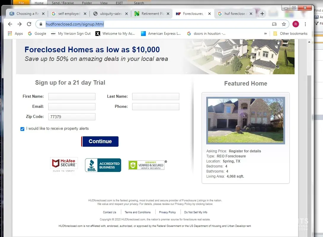 I purchased a free 21 day free trial of web site access for foreclosures on 11/05/2020. They never notified me the free trial was expiring and made an unauthorized debt on my card. Most of their advertised properties were outdated. I closed the account same day and requested a refund. It has been two months and they still refuse to send me my refund. They say they have but it still has not posted to my bank acct. Total rip-off company. They should not do business using hud in their advertising. It is misleading and total fraud. Someone should shut them down.