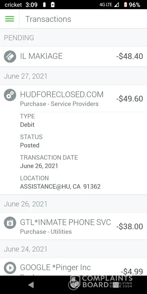 HUDforeclosed has received 47 complaints on ComplaintsBoard. The first reported case, took money from account without authorization, was published on Oct 17, 2008, and the most recent complaint, No follow through on request to terminate contract at ony 5 day in, not 21., was posted on Jul 19, 2023.