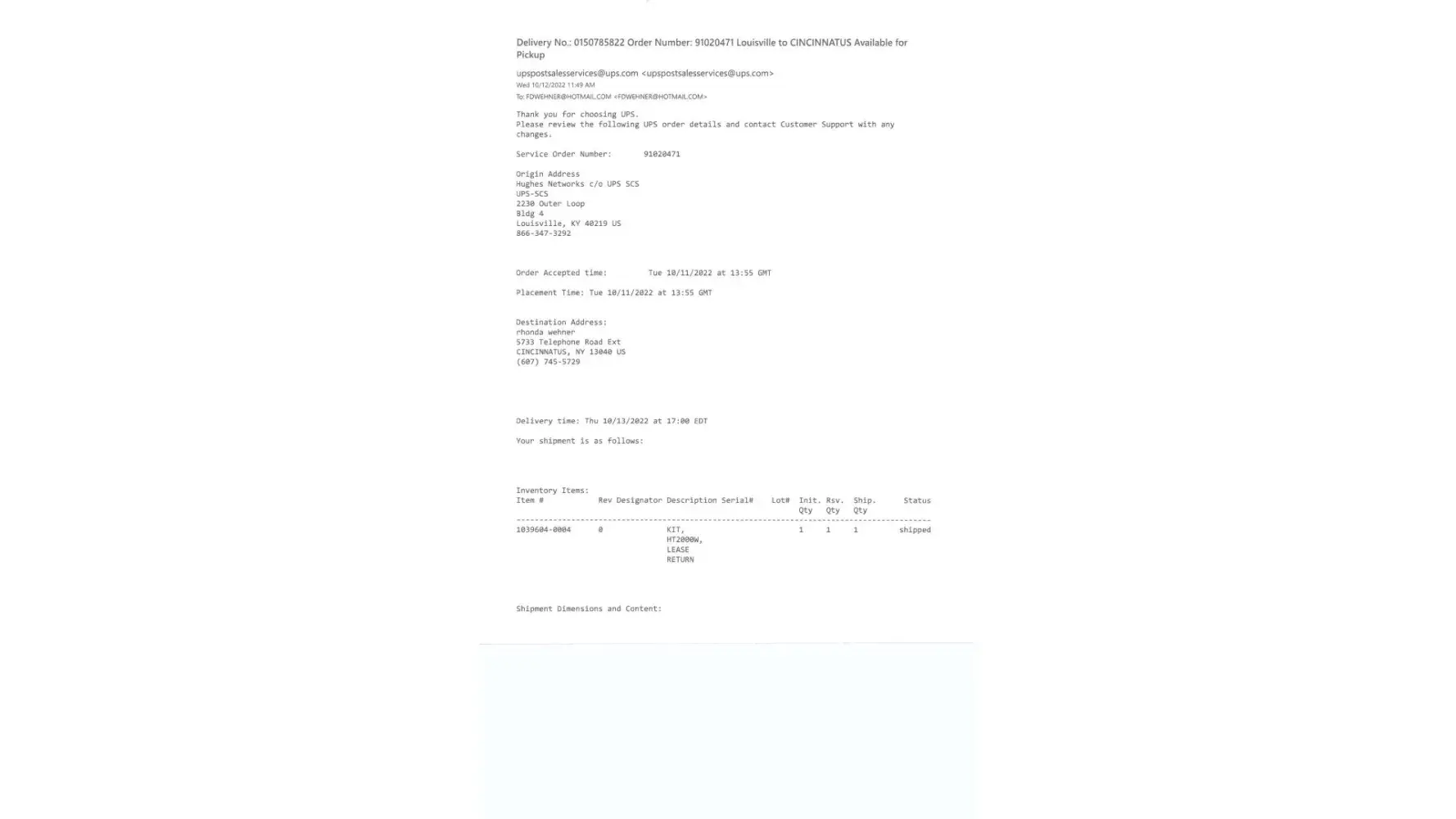 I Canceled my service with Hughesnet in September of 2022, I was told that a box would be shipped to me on October 11, 2022 to return the equipment. I was charged $361 and was told I would be charged $310. I am still waiting for the box, and have been given two different UPS Tracking numbers and they just show that the company made the label. If my equipment is not returned they will charge me another $300 and I can't afford that. Here are the tracking #'s 1Z7AF3880363012313 & 1Z6W37599029076810
