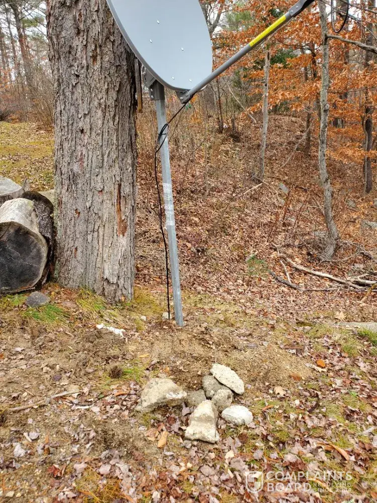 This is an example of sloppy and lazy work, reflecting on his company as well as Hughes net. Unprofessional. As I have an ankle injury, I was not able to go outside and make sure the work was done neatly and correctly.