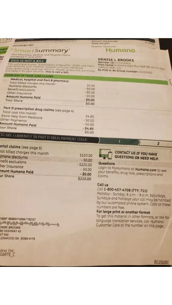 Desired outcome: To make sure that Humana pays for the 4,000.00 per year just like they promised, for my dental care.