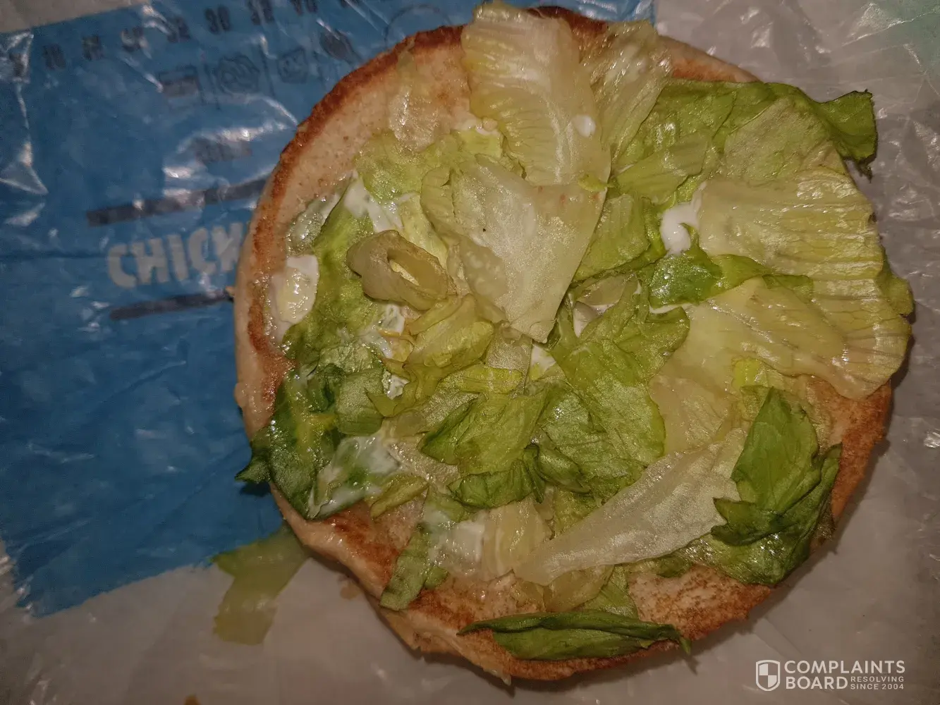 On Saturday 27th April (today) I purchased a cheesy cheeseburger without pickles when it arrived it had pickles on it, I also ordered aChicken Royale burger, it is advertised as being flame grilled, I would expect to see grill marks but there were none also as you will see by the attached photographs the lettuce was wilted, lackluster and brown tinges on the efges, I was expecting fresh and there was a distinct lack of mayonnaise. As I have always enjoyed Hungry Jacks and up until today never received a disappointing meal I am greatly dissatisfied and disappointed.